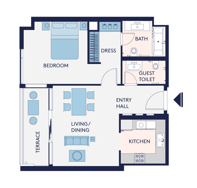 Simple, elegant 1 bedroom apartments address the needs of modern urban dwellers. With generous living space and floor-to-ceiling windows, these apartments offer bright, exceptional residences for individuals and couples, right in the heart of the city.